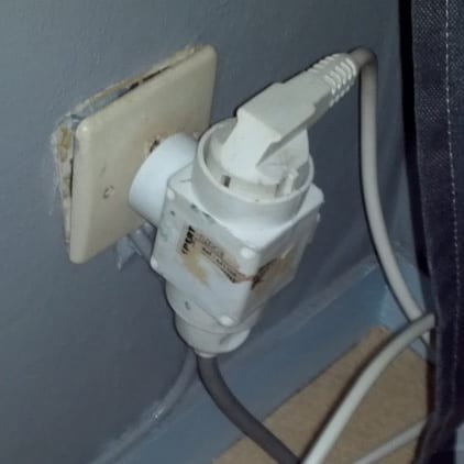 And we don’t put many of them in, because it’s not easy to drill into the tiles (well… let’s just say it requires a certain amount of meticulousness, and tools that not all workers have). So in practice, we have three sockets in the room, each one overloaded with multiple sockets built into each other, for the TV, satellite dish, video recorder, stereo and mobile phones.