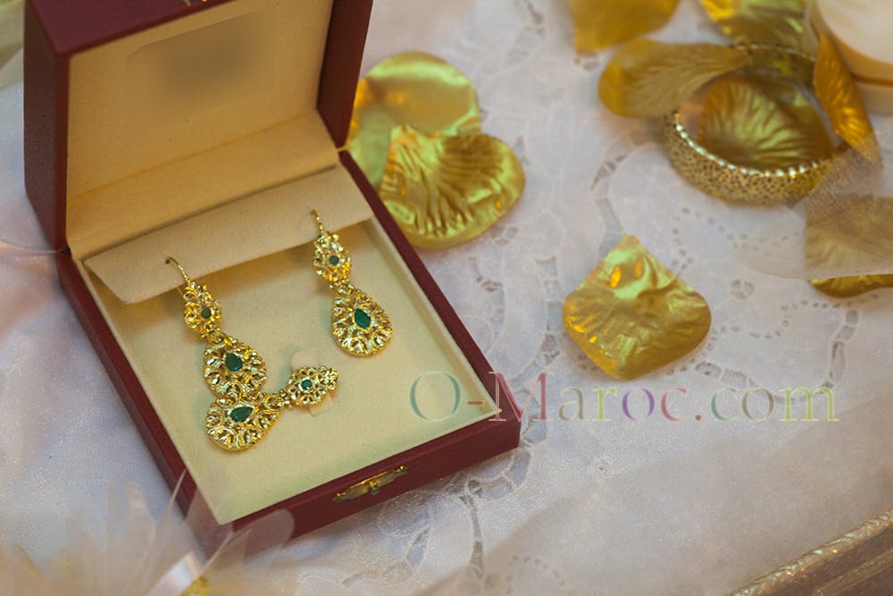 So gold jewellery or silver jewellery? First and foremost, it’s better to have a beautiful piece of silver jewellery than a poorly made, crude piece of gold, a beautiful piece of silver jewellery than a brass bracelet that claims to be made of gold. But for the Moroccan bride, it’s better to have plenty of gold, even if the jewellery has to be rented from the Negafa, or if it’s just a light plating.